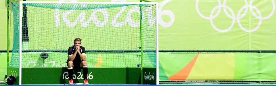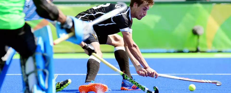 Beim olympischen Feldhockey stehen sich zwei »Mannschaften für 4 × 15 Minuten gegenüber. Beide Teams versuchen, mit am Ende gekrümmten » Schlägern den » Ball ins » Tor der gegnerischen Mannschaft zu schlagen (» Torschuss). Tore zählen nur, wenn die angreifende Mannschaft den Ball im halbkreisförmigen » Schusskreis regelkonform berührt hat. In K.-o.-Spielen folgt nach Unentschieden in der regulärer » Spielzeit ohne Verlängerung gleich ein » Shootout.
