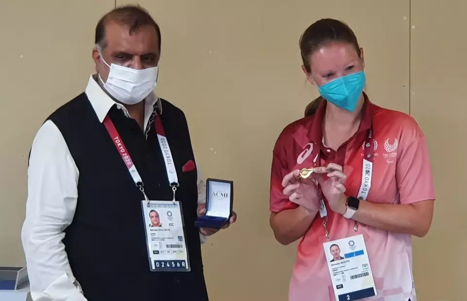 Im Anschluss an den Einsatz im Kleinen Finale der Spiele bekam Michelle Meister von FIH-Präsident Dr. Narinder Dhruv Batra persönlich ihre "Golden Whistle" überreicht. Diese erhielt sie für ihr 100. Länderspiel, das sie am 29. Juli mit der Vorrundenpartie zwischen Spanien und China leitete - ebenso wie drei andere SchiedsrichterInnen während dieses Olympischen Turniers.