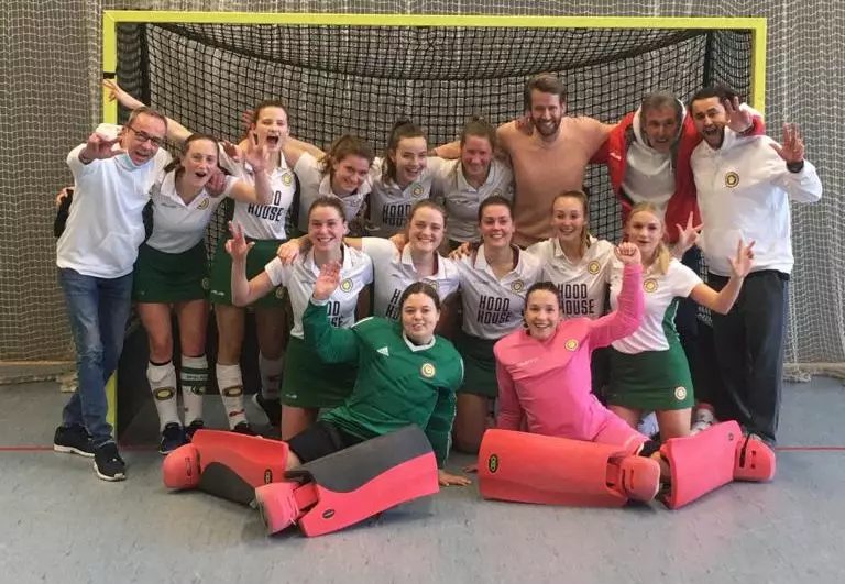 Für Eintracht Braunschweig, dass durch Corona-Erkrankungen gleich drei Nachholspiele noch auf dem Zettel hatte, war das Match am Samstag in der Polo-Halle in Hamburg ein erstes Endspiel. Nur mit einem Sieg hätten die Niedersachsinnen noch hoffen können, in den nächsten Nachholspielen gegen Großflottbek und UHC noch an Polo vorbeizuziehen. Doch die Damen aus Hamburgs Westen brauchten nur einen gute Viertelstunde, ehe sie durch einen Doppelpack von Inke Lindberg in Führung gingen und zur Pause schon 3:0 führten. Braunschweig kam gegen die Polo-Hintermannschaft nicht zurecht, kam letztlich trotz sieben Strafecken zu keinem einzigen Torerfolg und kassierte in der zweiten Hälfte noch drei Treffer zum klaren Endstand. Polo (Foto: F. Ness) blieb damit in der Aufstiegssaison in der 1. Liga, die weiteren Eintracht-Nachholspiele werden nun nicht mehr ausgetragen.